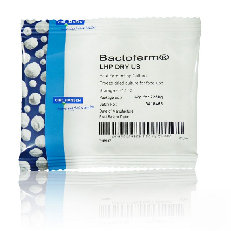 Bactoferm HPS DRY US is a culture for production of very fast fermented sausages at high temperature with a short production time. The culture has a high salt tolerance and ensures a quick initiation of the acidification process.